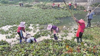 连日来,仙游县枫亭镇河长办组织人员,下河打捞清理枫慈溪中游的水葫芦。近期降水量偏少,东宅桥下水葫芦滋生蔓延,影响水质,造成春耕用水不便。枫亭镇建立长效机制,对水葫芦进行常态化治理,确保河畅水清。