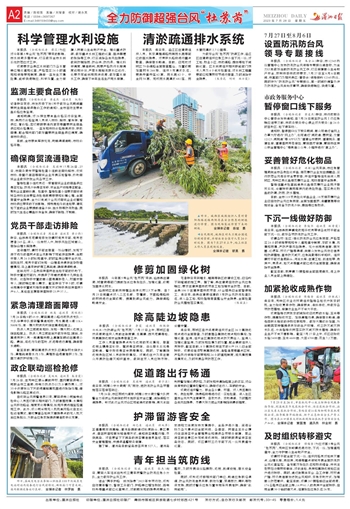 该局还组织警力,联合各乡镇、村居,对人员密集场所、危险地带、隐患路段等进行逐一实地检查,深入社区宣传台风天气注意事项、自救方法、求助渠道,及时整改各类风险隐患,尽最大努力把台风影响降到最低程度。