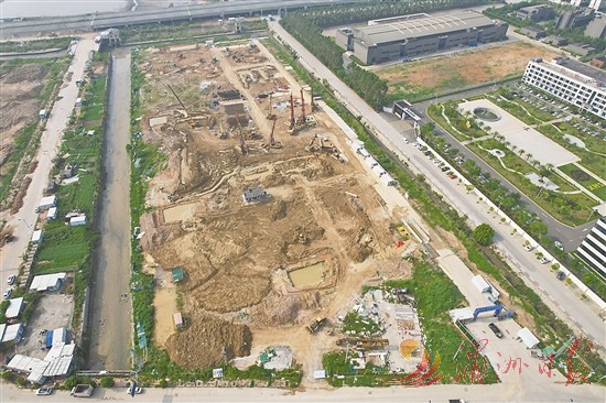 8月17日,在东海鞋服产业园项目现场,16台旋挖钻机、24台冲孔钻机、12台挖掘机和6台吊车正紧张施工,500多名施工人员忙碌着。
