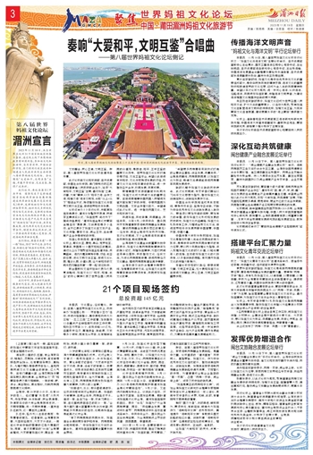 2023年11月18日,来自世界五大洲31个国家和地区的各方嘉宾,通过线上线下共聚妈祖故里莆田湄洲岛,参加由文化和旅游部、自然资源部、中国社会科学院、澳门特别行政区政府和福建省人民政府共同主办的第八届世界妈祖文化论坛。会议围绕“大爱和平,文明互鉴”主题,开展平等对话、交流互鉴,取得广泛共识。