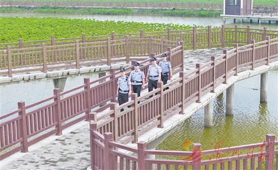 立秋刚过,莆田市木兰溪口省级湿地公园——涵江“蓝色海湾”绿意葱茏,生机盎然;沿着滩涂栈道,三江口派出所民辅警正认真进行巡逻,守护一方人海和谐的美丽生态画卷。