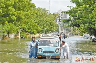 卡拉奇最新一轮强降雨从3日晚一直持续到11日下午,当地多处城区和主干道被水淹没。救援人员11日说,过去24小时内有至少6人在强降雨造成的事故中死亡。