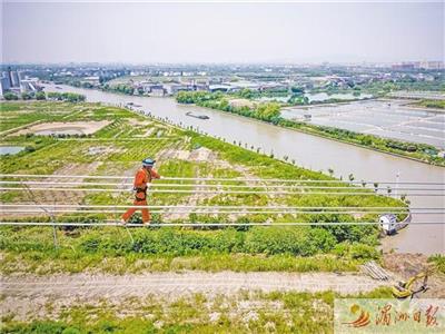 7月12日,电力工人对新建设完成的白鹤滩—浙江特高压直流输电工程线路进行走线验收工作(无人机照片)。连日来,浙江省杭州市持续高温天气。国网浙江电力的电力工人在烈日下对新建设完成的白鹤滩—浙江特高压直流输电工程浙江段线路进行走线验收工作,确保工程顺利投产运行。 新华社记者 江汉 摄