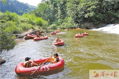 近日,随着气温升高,贵州省赤水市香溪河上的漂流景区吸引众多游客前来漂流戏水,乐享清凉。近年来,赤水市两河口镇黎明村在香溪河上开发漂流项目,当地村民通过入股分红、在景区务工、开办农家乐吃上“旅游饭”,实现增收。 新华社 发