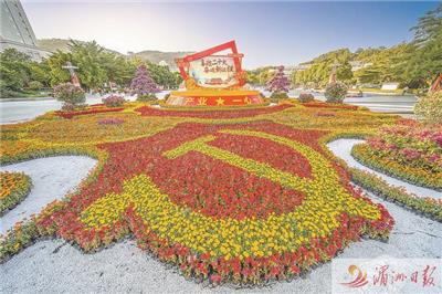 连日来,我市在一些重要地点布置主题花坛,做好花化美化,营造喜庆氛围,喜迎党的二十大胜利召开。图为市政府广场主题花坛。 本报记者 蔡昊 摄