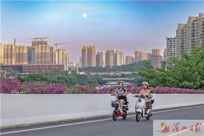 一年好景君须记,最是橙黄橘绿时。傍晚的市区景致如画,溪南路上的市民惬意地在夕阳余晖和似锦繁花中穿行。 本报记者 蔡昊 摄