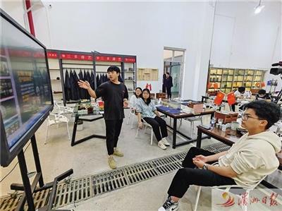 在该院工艺美术系漆艺工作室,由工艺美术、电商、财务专业学生组成的大学生创新创业团队在创业导师余靖炜的指导下,进行线上新零售模式探索(如图)。该团队名为伯牙子漆,以创作传统漆工艺品为主。该项目以学生为主导,结合学院专业,与当地企业深入合作,通过短视频直播等形式销售所创作的产品,目前年销售额可达两三百万元。
