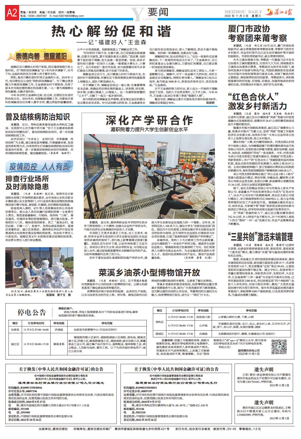A1 要闻 A2 要闻 A3 国内国际 A4 检察  看点 B1 民生 B2 城厢观察  教育 B3 法治  晚晴 B4 卫生