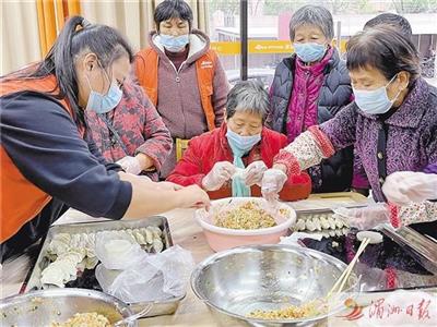 12月15日,一场冬至主题活动在荔城区拱辰街道濠浦社区“党建+”邻里中心举行,邀请社区老人参加,送上关爱。图为社区老人在包饺子。 全媒体记者 林英 摄