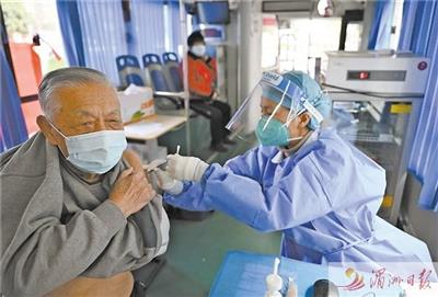 12月12日,在广州市荔湾区广钢新城便民疫苗接种车上,医务人员为老年居民接种新冠疫苗。连日来,广州、合肥、北京、重庆等地针对老年人的新冠疫苗接种工作持续推进。社区在组织新冠疫苗接种过程中,充分考虑老年人年纪大、行动不便等情况,采取了多种便民服务,通过上门接种、开设专场、流动接种车等方式,做好服务保障。 新华社记者 邓华 摄