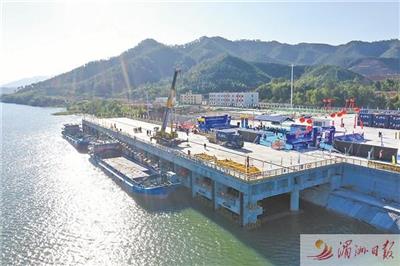 12月18日,“武夷2号”新能源货船停靠在南平港延平新城港区洋坑码头装运货物。当日,在福建南平港延平新城港区洋坑码头,满载竹制品、石英砂等货物的“武夷2号”新能源货船鸣笛离港,标志着闽江干流正式恢复通航,拉开了福建省集装箱江海联运的序幕。 新华社记者 林善传 摄