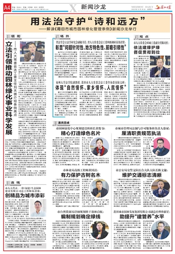 “《莆田市城市园林绿化管理条例》的正式颁布实施,是我市园林绿化建设史上的一件大事,标志着莆田市新时代城市园林绿化管理工作步入了更加规范化、法治化的轨道。”新闻沙龙上,市人大常委会环城工委副主任陈培红说,该条例是坚持依法建绿、从严护绿的“法尺”,为推动园林绿化事业发展提供了有力的法治保障。