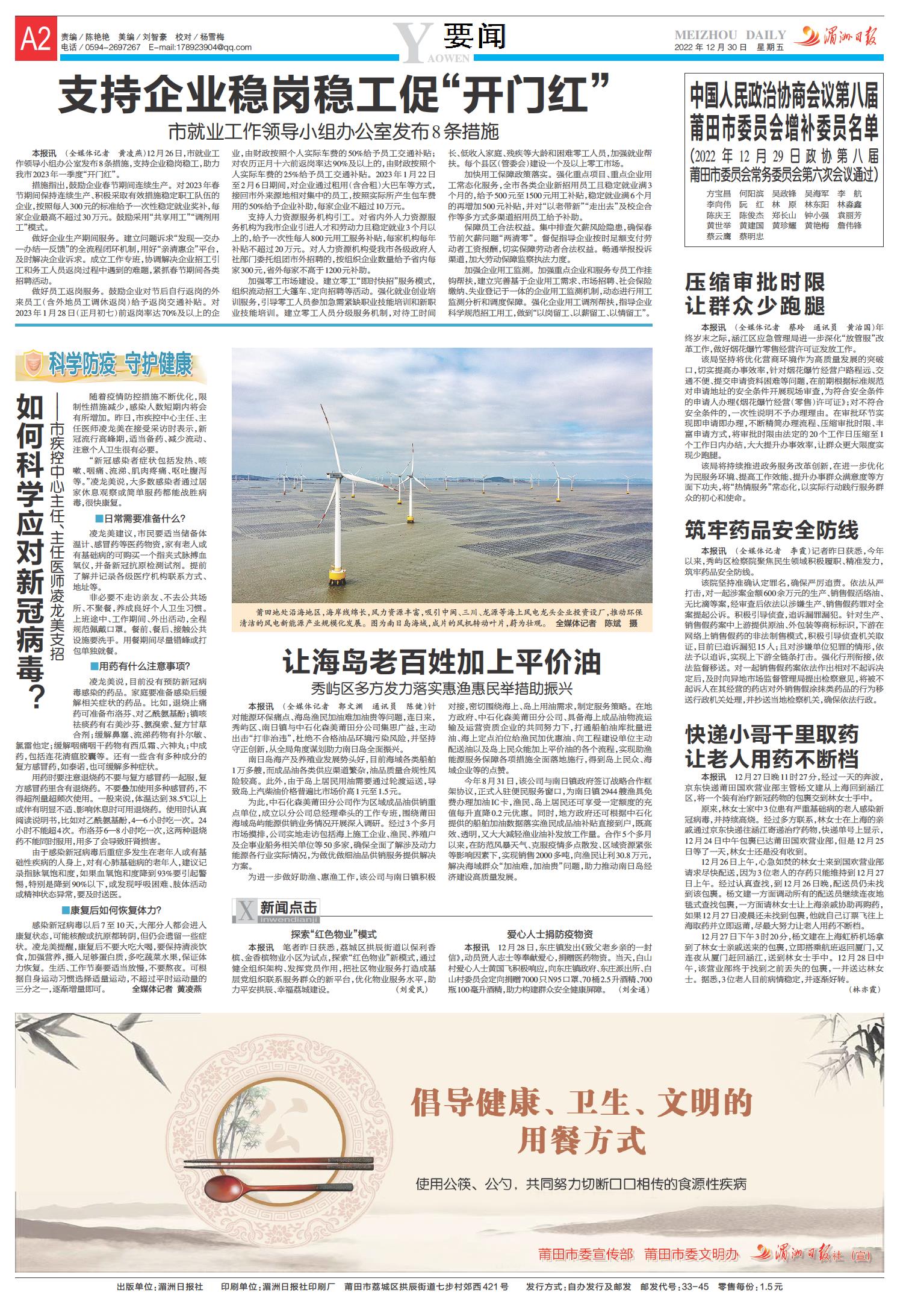 A1 要闻 A2 要闻 A3 国内国际 A4 新闻沙龙 B1 民生 B2 秀屿观察 妈祖 B3 湄洲岛观察 看点 B4 图说