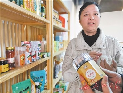2月6日,“湄洲妈”会员店,张吓妹正向北京客人介绍莆田枇杷产品(如图)。“一棵小枇杷,可以做很大的一篇文章、一条很长的产业链。莆田盛产枇杷,然而深加工、精细加工的产品并不多,延伸枇杷产业链还有一段很长的路要走。”她对记者说。