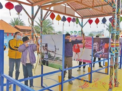 结合“莆阳开春,开河、开街、开村”活动,我市各地开设丰富多彩的运动项目,吸引市民游客参与游玩,促进体育融合。图为市民在游乐园体验射箭项目。 全媒体记者 林英 摄