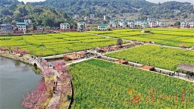 三月,春暖花开。我市各地的油菜花也渐次开放,进入观赏期。图为涵江区坪盘村的油菜花海与白墙蓝瓦的民居构成美丽乡村画卷,吸引不少游客前来赏花观光。 全媒体记者 杨怡玲 摄