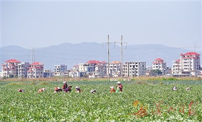 眼下正是蚕豆上市时节,荔城区黄石镇西洪村的蚕豆种植基地,村民们正在采摘蚕豆供应市场。 朱崇飞 摄