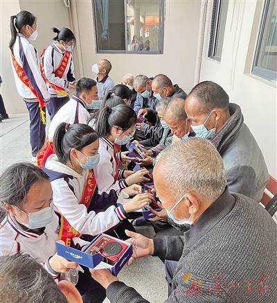 3月4日,莆田擢英中学组织学生到荔城区拱辰敬老院开展“学习雷锋我先行”主题志愿服务活动,通过打扫卫生、送上收音机、深入谈心等形式关爱、尊重老人。图为学生教老人使用收音机。