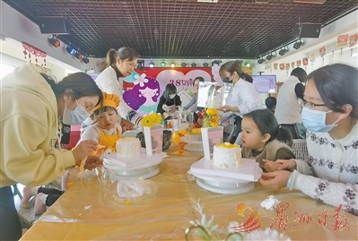 近日,市委文明办、市妇女儿童活动中心联合举办庆祝“三八”国际妇女节活动,搭建亲子互动平台,20多个家庭齐聚一堂,共同制作蛋糕和花束。