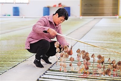本报讯 “紫菜是通过这些贝壳育苗的,等到今年秋分时节,这些紫菜苗就能下水了。”3月6日下午,在北岸山亭镇蒋山村紫菜育苗基地1号厂房里,一个个池子里整齐地挂着一串串的贝壳,养殖户章群香正认真查看紫菜苗培育情况(如图),这是该基地首批培育的紫菜苗。