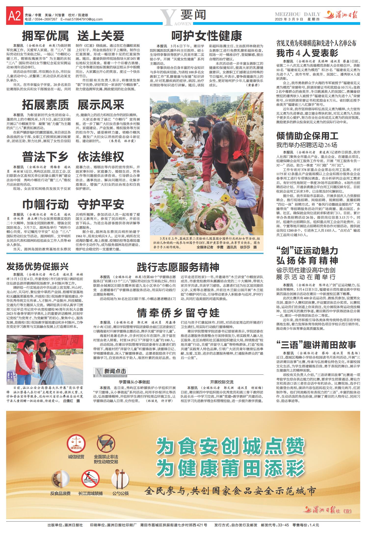 A1 要闻 A2 要闻 A3 聚焦全国两会 A4 国内国际 B1 产经 B2 涵江观察 快评 B3 公安视线 妈祖 B4 思考