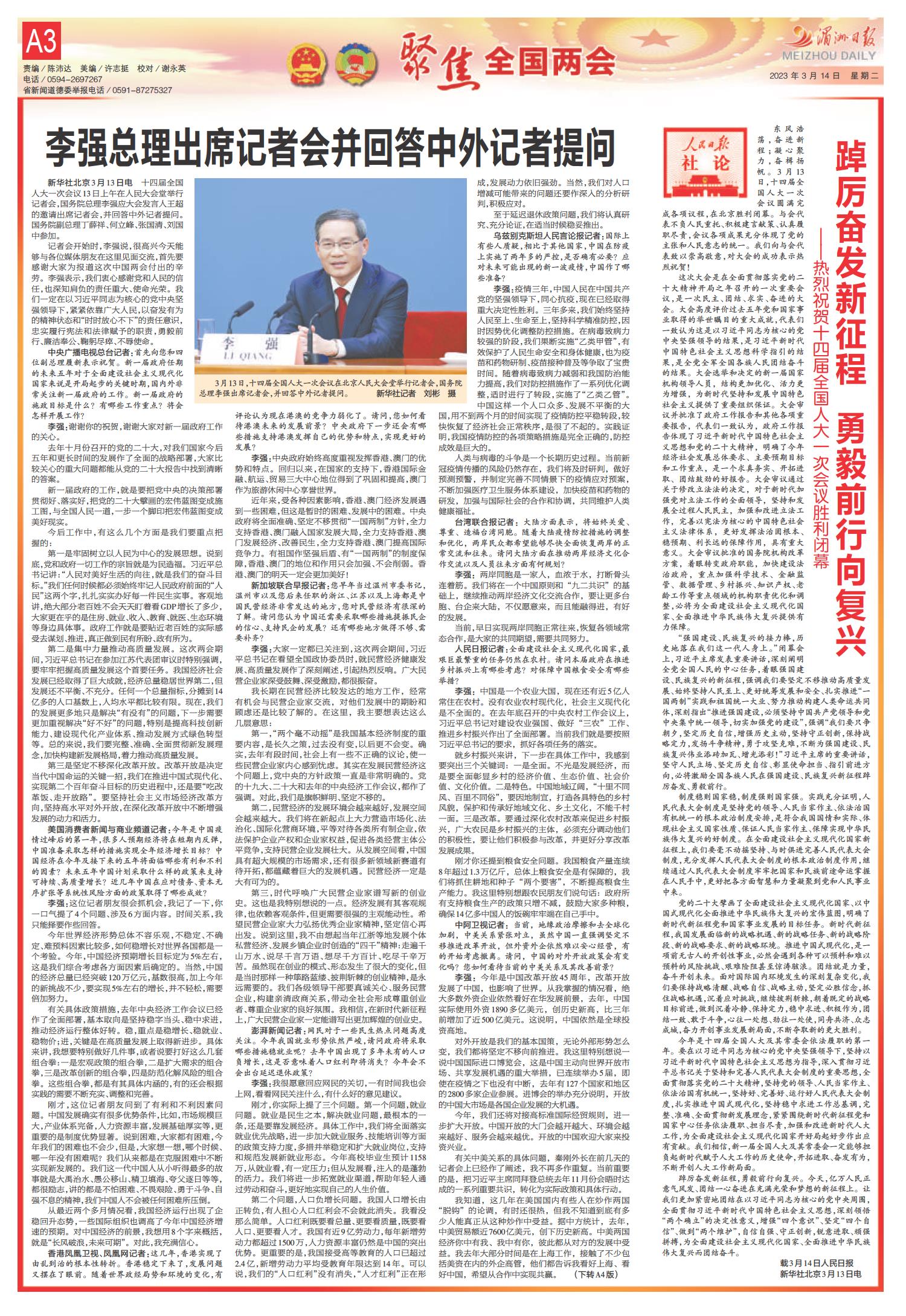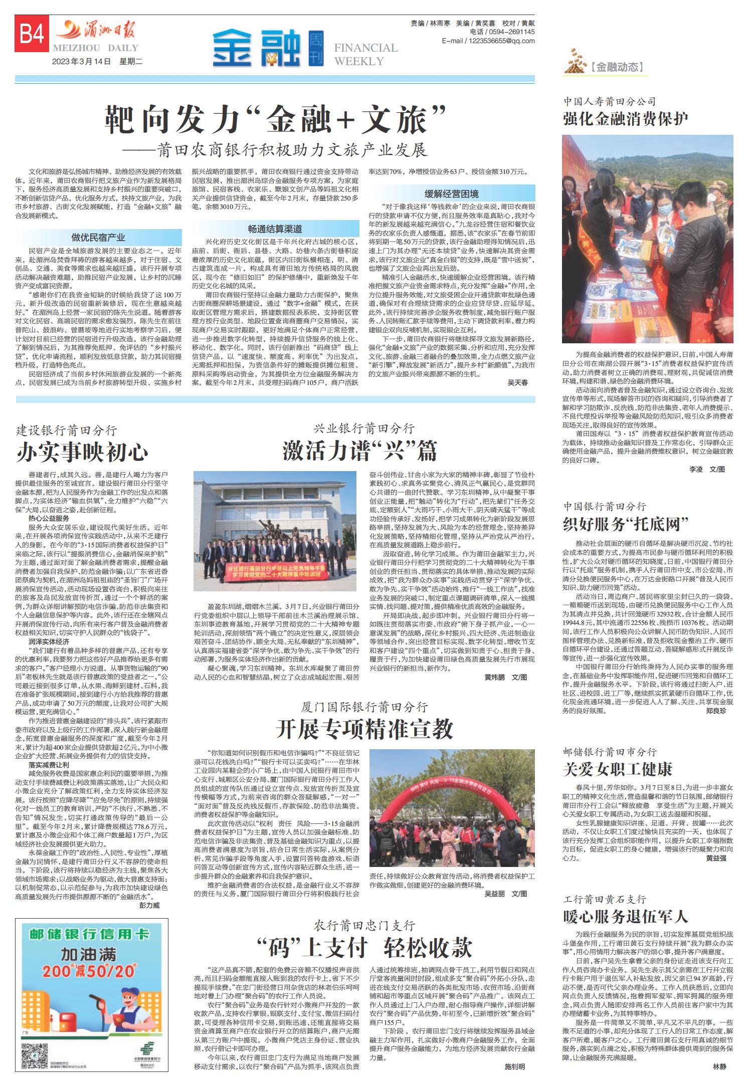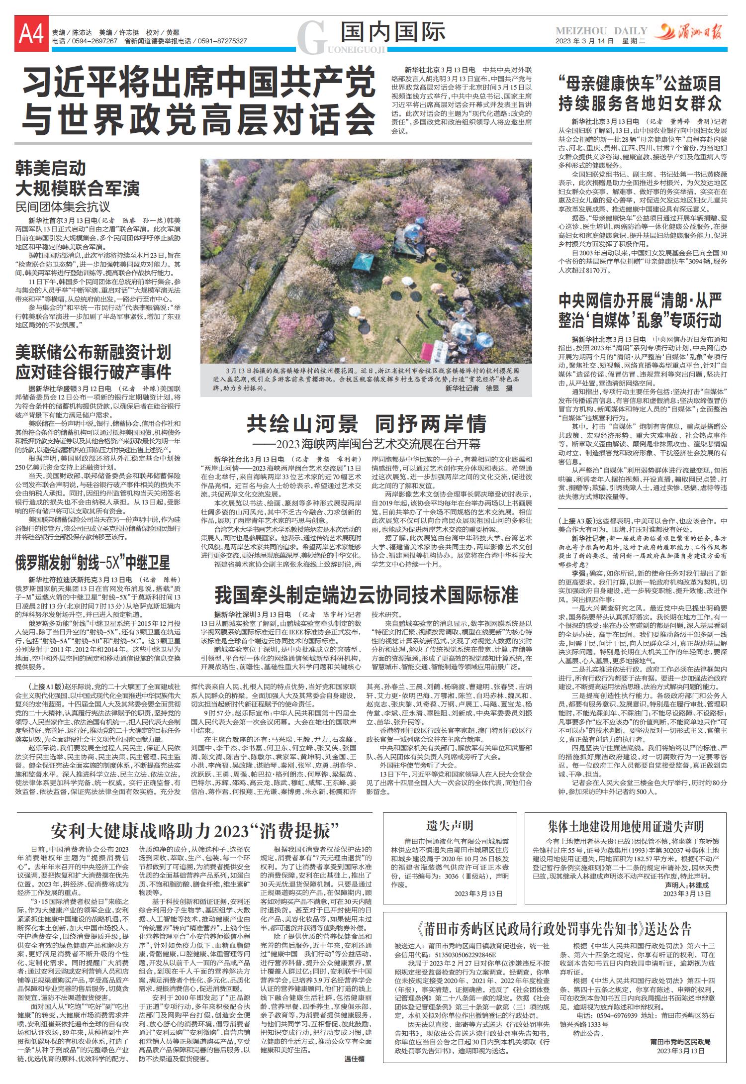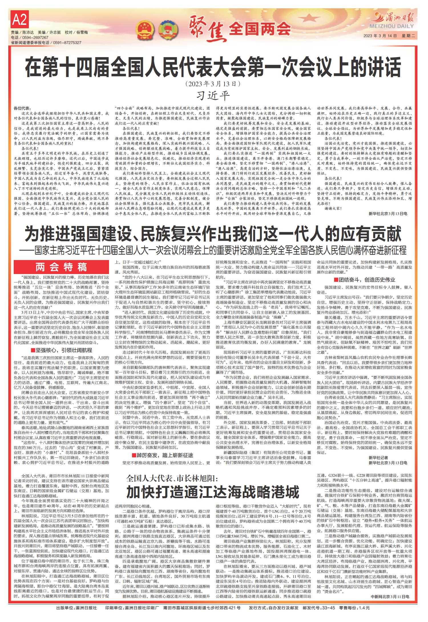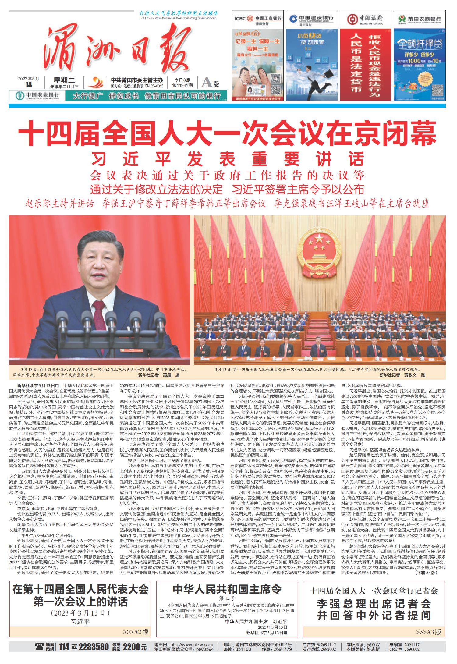A1 要闻 A2 聚焦全国两会 A3 聚焦全国两会 A4 国内国际 B1 聚焦全国两会 B2 聚焦全国两会 B3 荔城观察 B4 金融周刊