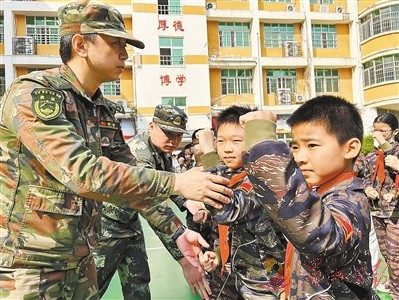 在该校操场上,伴随着响亮口号和激昂乐曲,学生们在教官的带领下,进行热身、跑步运动。随后,教官根据学生们的身体特点,安排了一系列体能基础动作训练。活动过程中,教官耐心讲解要领、示范动作,并“手把手”纠正学生不规范动作(如图)。学生们训练热情高涨,努力做好每一个动作,在强身健体的过程中磨炼意志。