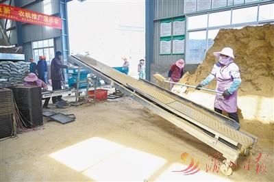 伴随着“哒哒哒”的响声,一台高速智能化成套播种机马力全开。传送带上,育秧盘排着队,经过第一个“漏斗”铺土;自动洒水后,第二个“漏斗”均匀地“吐出”种子;紧接着最后一个“漏斗”再次均匀覆盖一层营养土。自动叠成4盘后,工人再将育秧盘搬到一旁的空地堆积起来,并用黑薄膜覆盖起来催芽。