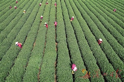 3月28日,采茶工在浙江省杭州市西湖区西湖龙井原产地一级保护区的茶园里采摘西湖龙井明前茶。近日,国内多个产茶区迎来明前茶采摘、加工高峰,茶园和茶叶加工厂里一派繁忙的景象。新华社 发