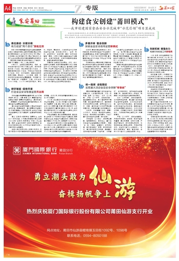 食品安全是最基本的民生,是人民群众美好生活最基本的需要,是全社会的共同期盼。2016年以来,莆田市以创建国家食品安全示范城市为主线,从先行先试到先行示范,在落实“两个责任”、智慧监管、信用监管、重大活动保障、行刑衔接等领域开展更宽领域、更深层次、更高标准的探索与应用,积累典型案例经验,发挥示范标杆作用,全面提升食品安全治理能力和治理水平。