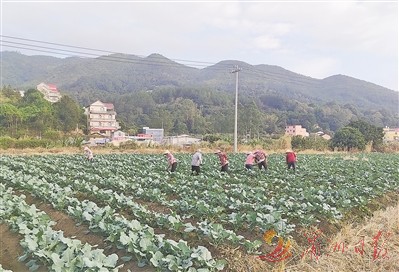 融融春光下,广山村兴田生态农业基地里绿油油的蔬菜铺满大地,村民们分散在田里劳作,一派生机勃勃。基地负责人严生仁是省乡村振兴“农村创新创业明星”,他在广山村流转土地近50公顷,种植有机蔬菜、大豆、水稻等,引进计算机智能温控系统等一批现代农业设施,打造“科技特派员+公司+农户”的共享平台,改变了当地农民只能靠天吃饭、产业发展缓慢的困境。基地每天可出产蔬菜1000公斤,一季度可实现农民增收约50万元,成为麦德龙、沃尔玛、朴朴等大型连锁商超主要的绿色有机蔬菜货源地之一。