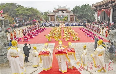 本报讯 (全媒体记者 郑已东 通讯员 程黎婷 高亚成 文/图)3月27日10时许,广东省汕头市潮阳区贵屿天后古庙举行湄洲分灵妈祖回銮安座仪式,为“广东省汕头市贵屿天后古庙诣湄洲妈祖祖庙壮阙香火”活动画下圆满的句号。25日至26日,汕头市粤潮妈祖文化交流中心会长、贵屿天后古庙名誉会长黄松庆,汕头市贵屿天后古庙名誉会长杨镇喜、会长陈文波率800多位妈祖敬仰者,恭请分灵妈祖赴湄洲祖庙谒祖进香。在莆期间,分灵妈祖还驻跸湄洲祖庙莆田会馆,并开展文化民俗交流和绕境踩街等活动,为闽粤两地妈祖文化交流再续新篇。