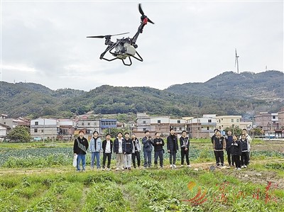 本报讯 3月28日,湄洲湾职业技术学院组织自动化工程系无人机专业的学生走进涵江区江口镇大东村,将思政课堂搬进马铃薯种植田里,结合植保无人机现场教学,进一步强化学生专业技能培训,致力于培养更多高素质复合型技能人才,让职业教育在乡村振兴中“大有可为”。
