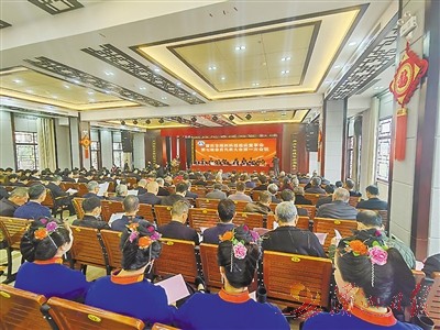 图为湄洲妈祖祖庙董事会召开第七届会员代表大会第一次会议。