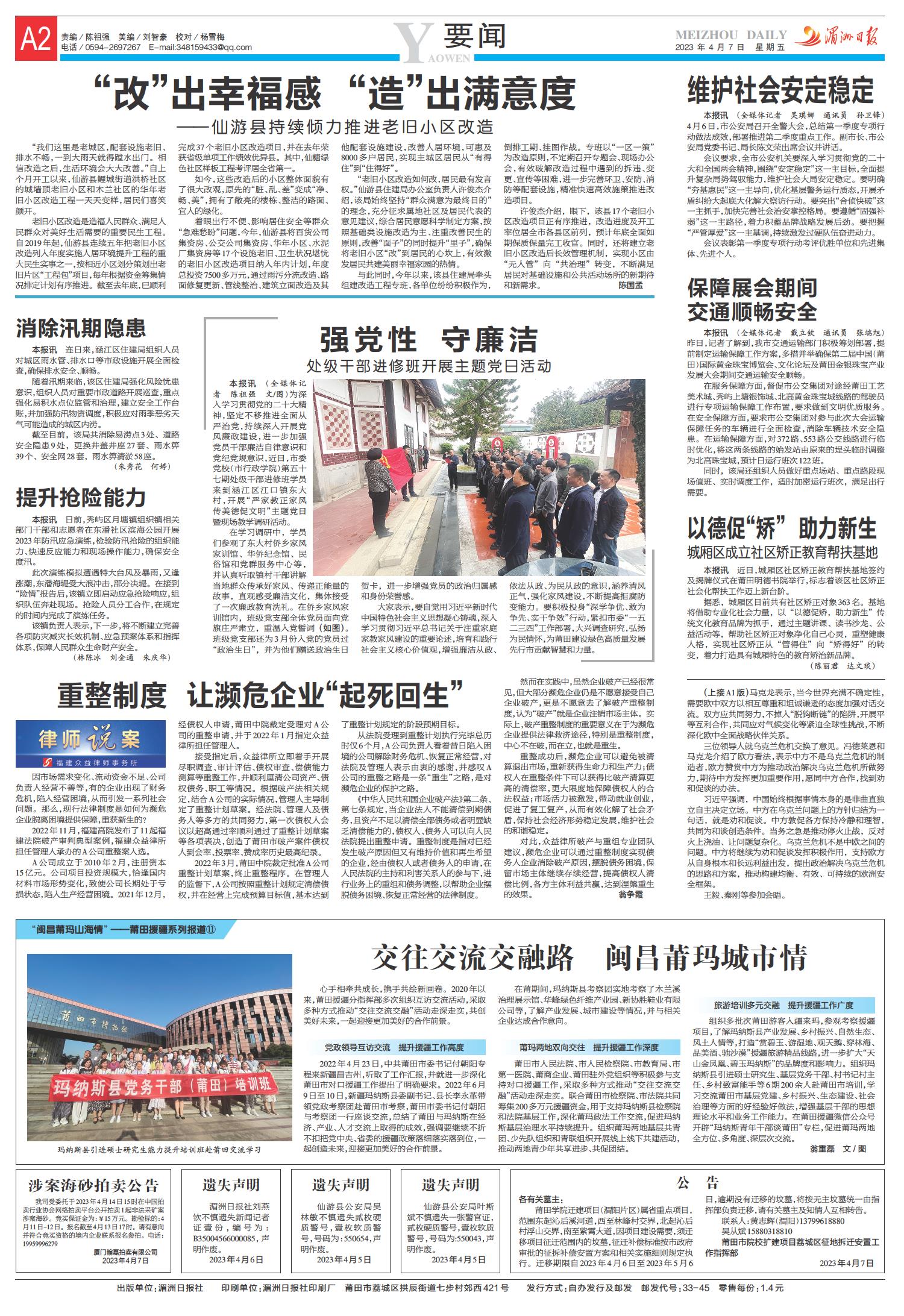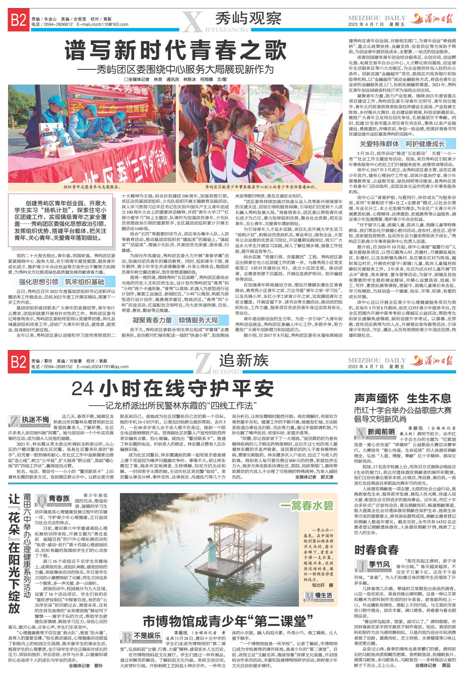 A1 要闻 A2 要闻 A3 国内国际 A4 专题 B1 民生 B2 秀屿观察 追新族 B3 北岸观察 快乐写作 B4 体育 生态