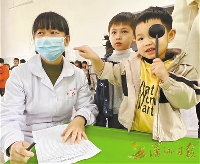 连日来,仙游县榜头镇中心卫生院组织基本公共卫生儿童健康管理项目医务人员深入该镇各幼儿园,对4800多名幼儿园学生进行视力测试等,体检发现视力低常率逐年上升,提醒家长应树立近视防控意识,从小从早抓好预防,帮助孩子养成良好的用眼习惯。图为视力测试现场。 晓郭 摄