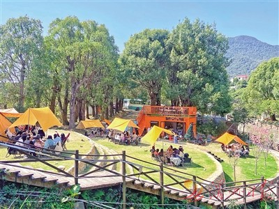 图为“萩山来信·崇福”露营基地吸引市民休闲放松。 张凤英 摄