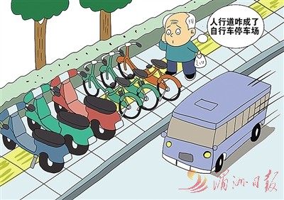 ●车在步道停 人在车道走