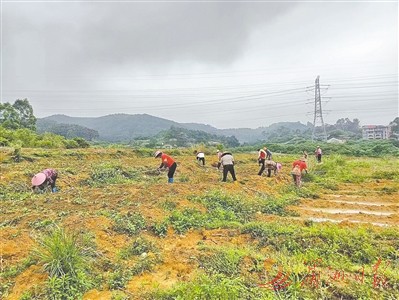 4月20日上午,记者在郊尾镇染厝村看到,一块抛荒地内,十几名党员和群众冒着细雨,挥舞锄头清理杂石杂草,施撒农肥,逐渐恢复抛荒地的耕地条件,随后播种了玉米、红薯等作物(如图)。该村党支部书记、田长陈丽芳告诉记者,染厝村是整治抛荒耕地的重点村,为确保春耕有序开展,实现应耕尽耕,该村党支部依托“三会一课”、主题党日活动等载体,已累计整治抛荒土地1.33公顷,并鼓励村民强化耕种,保障农资供应,邀请农业专家下乡指导耕作。