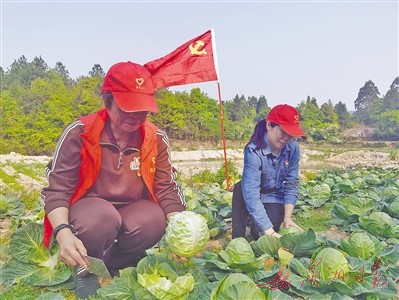 图为荔城区住建局党员深入田间地头,帮助缺少劳力的家庭收蔬菜。