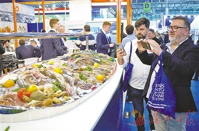4月25日,世界三大渔业博览盛会之一的全球水产品博览会在西班牙巴塞罗那开幕,来自87个国家和地区的超过两千家企业参展。由中国118家水产品加工及进出口贸易公司组成的“中国国家展团”亮相展会现场,是本次展会海外第一大国家展团。 新华社记者 孟鼎博 摄