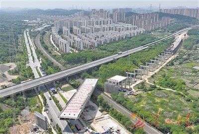 5月9日,转体重量14000余吨的武汉绕城高速改扩建转体桥成功转体,在100分钟内顺时针旋转71度,跨越武九铁路和森林大道公铁大动脉。施工单位中铁十一局用300吨配重使桥梁具备较好的平衡性,达到理想的转体条件,并采用精准控制手段,在规定的时间内完成转体。