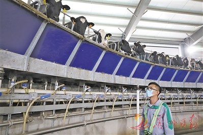 位于甘肃省武威市的这家现代化养牛场,奶牛戴上“运动项圈”后,呼吸数据、反刍频率、采食情况、行动步数等信息可以实时上传,让兽医随时掌握每头奶牛的产奶和健康状况,节省了大量人力物力;新式电子耳标,就像办了“二代身份证”,使奶牛身份识别与管理更加便捷,人工智能设备的应用让奶牛养殖管理效率得到大幅度提升。新华社 发