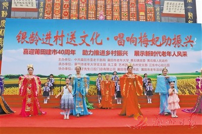 为深入学习宣传贯彻党的二十大精神,喜迎莆田建市40周年,5月20日,市委老干部局联合市老年大学、江东中心幼儿园、市老年活动中心等,在革命老区、乡村振兴示范村、梅妃故里——江东村,举行“银龄进村送文化,唱响梅妃助振兴”系列活动。