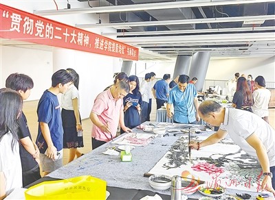 本报讯 5月26日,湄洲湾职业技术学院举行以“贯彻党的二十大精神,推进学院提质培优”为主题的书画笔会,进一步丰富校园文化活动,浓厚校园文化氛围,推进省级文明校园创建。