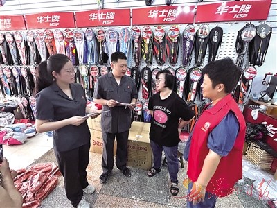 图为法官进店铺开展知识产权知识宣传。 全媒体记者 林罗晓 摄