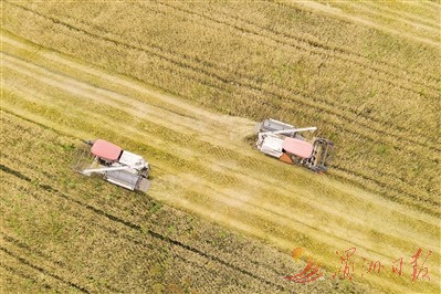 6月1日,在道场乡施家桥村的麦田里,收割机在抢收小麦。眼下正是小麦收割的时节,湖州市吴兴区道场乡施家桥村的千亩农田里机声隆隆,一派丰收繁忙的景象。2022年以来,浙江省湖州市吴兴区道场乡全力推动全域土地整治,连片打造万亩高标准农田,赋能现代农业,助力乡村振兴。新华社 发