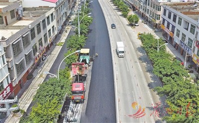 国道G228线灵川东进至笏枫公路段提级改造工程已进入“白改黑”,目前北半幅封闭铺设沥青,力争本月中旬实现半幅通车。全媒体记者 杨怡玲 摄
