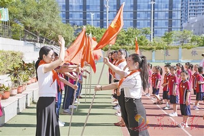 秀屿区第三实验小学创新德育工作机制,从学习、生活和礼仪三个维度对学生进行习惯培养,培养良好的思想品德和行为习惯。通过“结、训、帮、赛”等方式,全面推进师资队伍建设。落实“双减”政策,开设创客、莆仙戏、田径等26项社团课程,推动素质教育发展。
