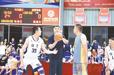 活动特邀中国篮球名人堂成员、省篮球协会主席、“战神”刘玉栋为比赛开球。球场上,球员们精神饱满、配合默契,接球、传球、扣篮、盖帽,赛况跌宕起伏,扣人心弦,一个又一个惊险而刺激的得分进球,带动着现场观众的情绪,加油声、呐喊声充斥着整个场馆。